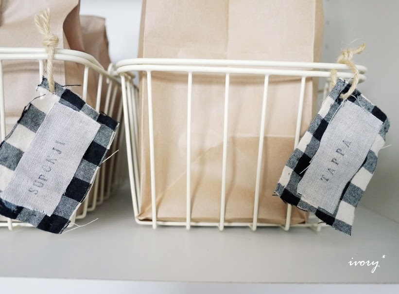 端切れのタグを付けて中身が分かるように♫