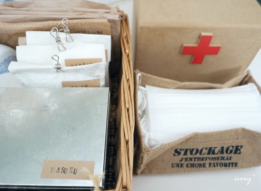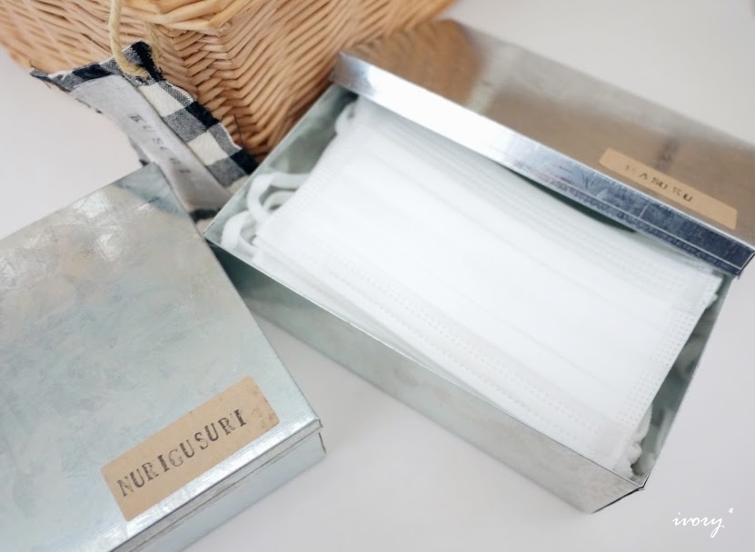 セリアのブリキBOXには、またまたマスク^m^*