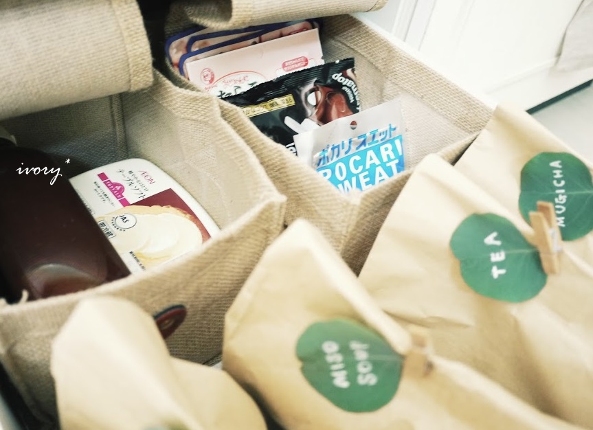 こんなふうにかごや紙袋を使った収納です(*^ー^*)