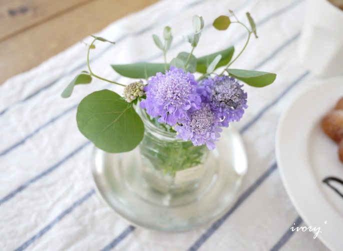 スカビオサ・ブルーバルーンとポポラスを飾っています♫