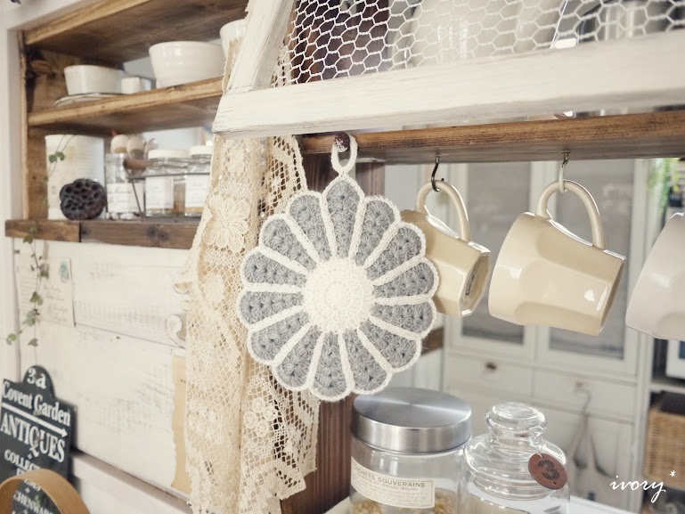 そして、カウンターの可愛いアクセントになっているデイジーのポットマット♡