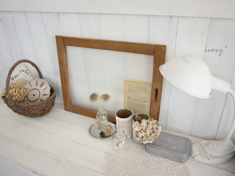 古いモールガラスの窓枠はこの場所にぴったり♡