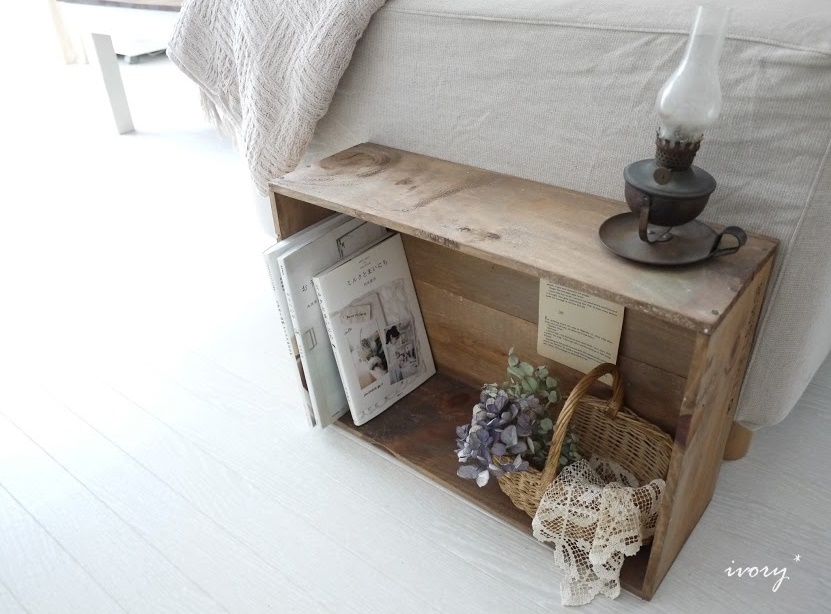 収納にも万能な木箱ですが