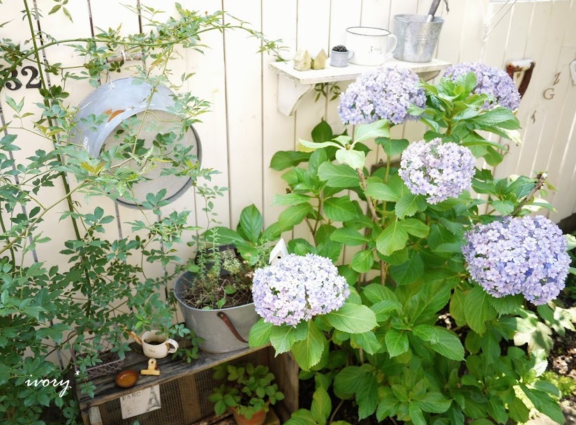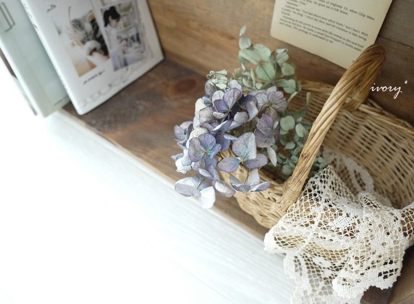 かご×紫陽花のドライ×レースも置いて